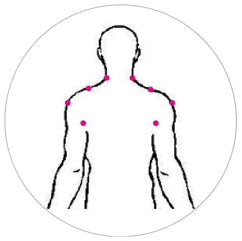 Applicando la moxa su alcuni punti sia sulla parte anteriore che posteriore alta del corpo è possibile trattare il dolore alle spalle causato da blocchi ai nervi e ai canali, periartrite e problemi generali di lassità articolare, insensibilità e dolore acuto.
